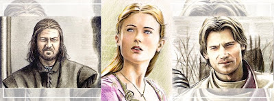 Three ACEO/PSC miniature portraits, of Game of Thrones actors Sean Bean, Sophie Turner and Nikolaj Coster-Waldau. (Click the pic to zoom in.) Each 2½ x 3½ inches(6.3 x 8.9 cm), mixed media (carbon, graphite & coloured pencil, marker) on Bristol board. Original cards for sale